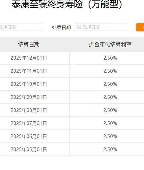 第二张图显示,该款“泰康至臻终身寿险(万能型)”在2025年5月至12月的实际结算利率仅为2.5%,与演示的4%相差甚远。